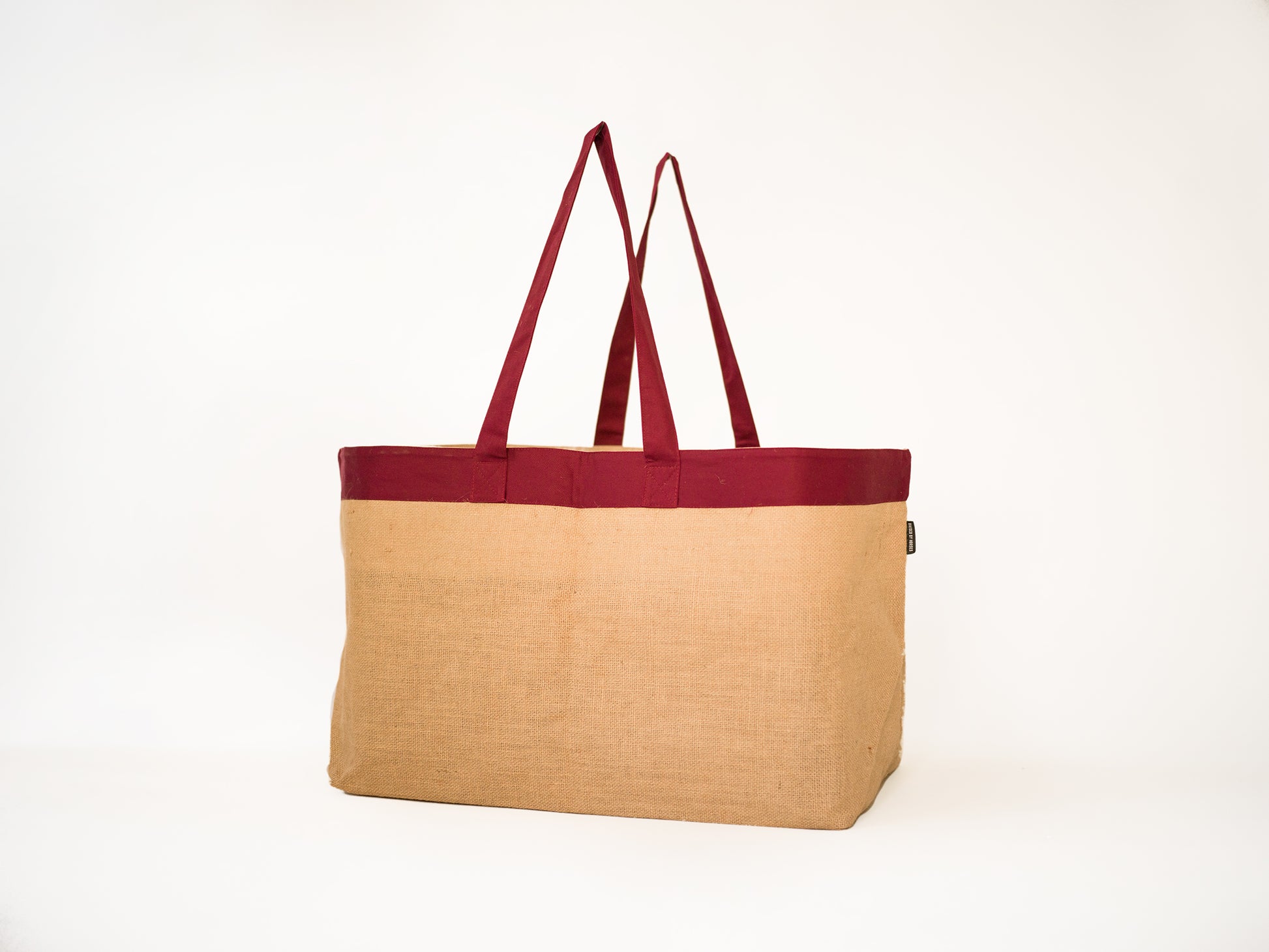 En slitstark höpåse i jute. Insida plastad för vattenavstötning. Handtag i bomull.